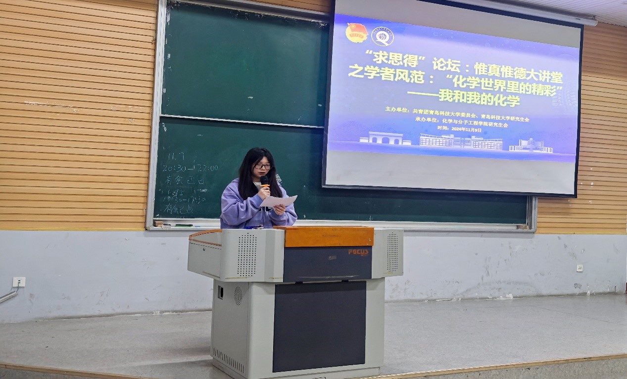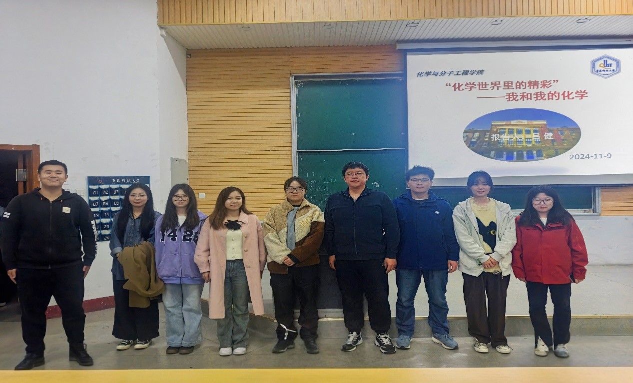 2024年11月9日下午4点化学院研究生会于四方校区第二教学楼101室开展“求思得”论坛:惟真惟德大讲堂之学者风范“化学世界里的精彩”专题讲座。青岛科技大学博士生导师,山东省“泰山学者”青年专家吕健教授应邀出席。报告会由刘云主持,化学院本科生与研究生同学积极参与本次报告会。