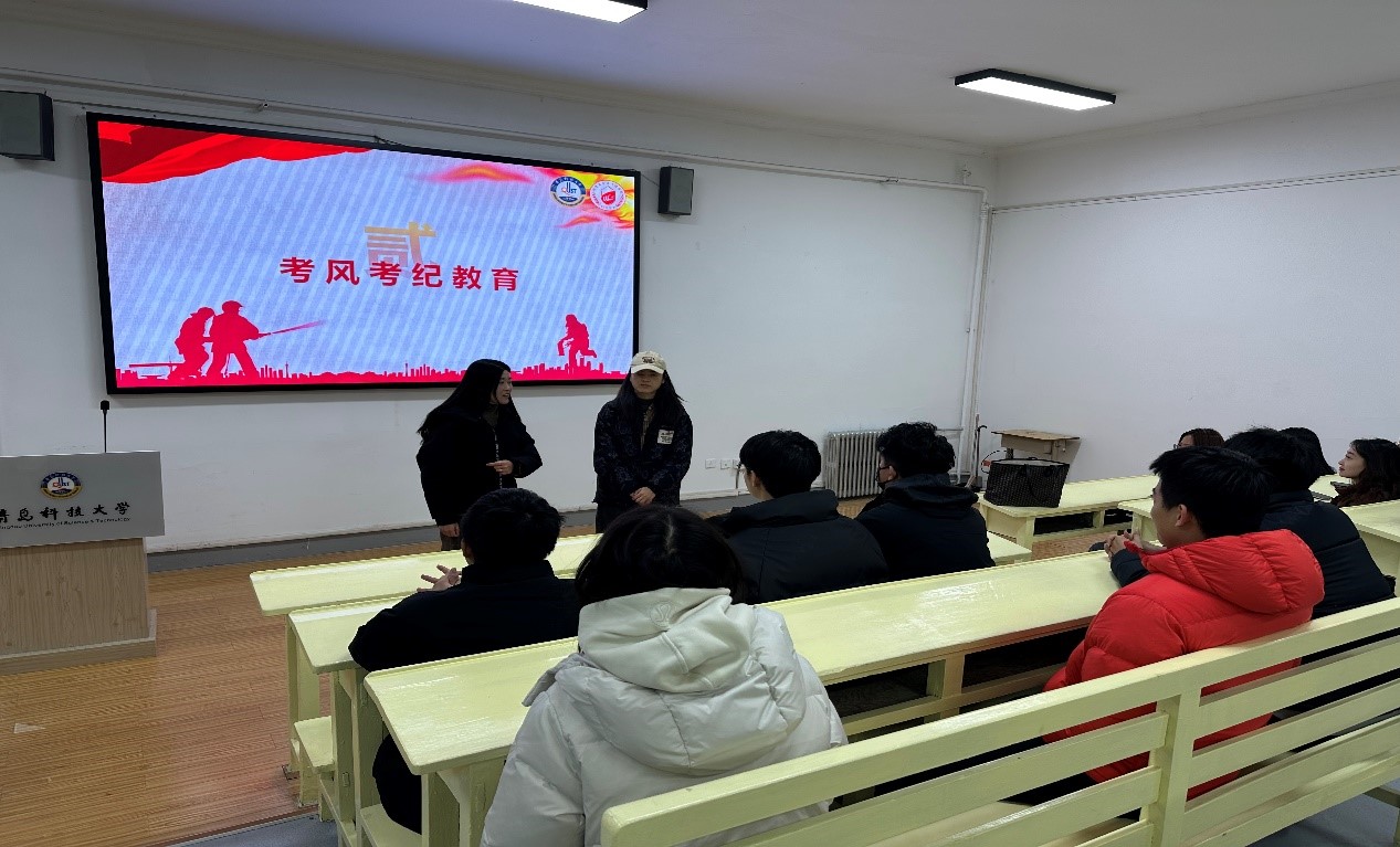 活动第一部分由徐鑫老师主持,她结合考试纪律管理与学术不端案例,讲解了考风考纪的重要性。徐老师强调,学术诚信是学术发展的基础,研究生必须严格遵守考试纪律,做到诚实守信、独立思考。她还介绍了学校规章制度和违纪处理措施,提醒大家自律自重,树立正确的学术道德观,做到“诚信为本,严谨治学”。