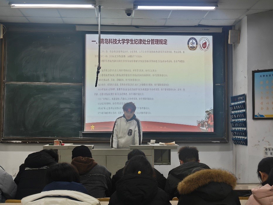 2024级各班负责人认真组织学生学习《青岛科技大学学生纪律处分管理规定》,逐字逐句解读关键条款,结合实际案例,深入浅出地阐述考试作弊行为带来的严重后果,使同学们对纪律红线有了清晰认知。同时播放《青岛科技大学考风考纪警示教育宣传片》,以生动直观的画面,展现了作弊行为带来的严重后果,使同学们深刻认识到诚信考试的必要性。