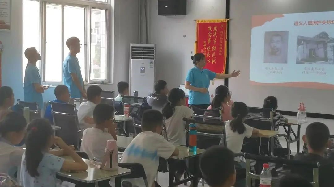 在柳园街道利民社区党群服务中心,青岛科技大学“忆来路,闯新程”遵义会议精神宣讲团选取了整个遵义会议中具有代表性的故事进行了宣讲,结合少年儿童的特点,把握红色育人的时代性、趣味性和层次性,以富有童趣的语言深入浅出地讲解了遵义会议的内容以及红军长征的艰难困苦,运用举例子的方式帮助孩子们理解遵义会议的重要意义,在孩子们心中种下了遵义会议精神的种子。学子归乡,共筑未来。本次社会实践活动让青年学子们深刻地了解到家乡的发展与变迁,为社会发展贡献力量。(通讯员:刘涛)