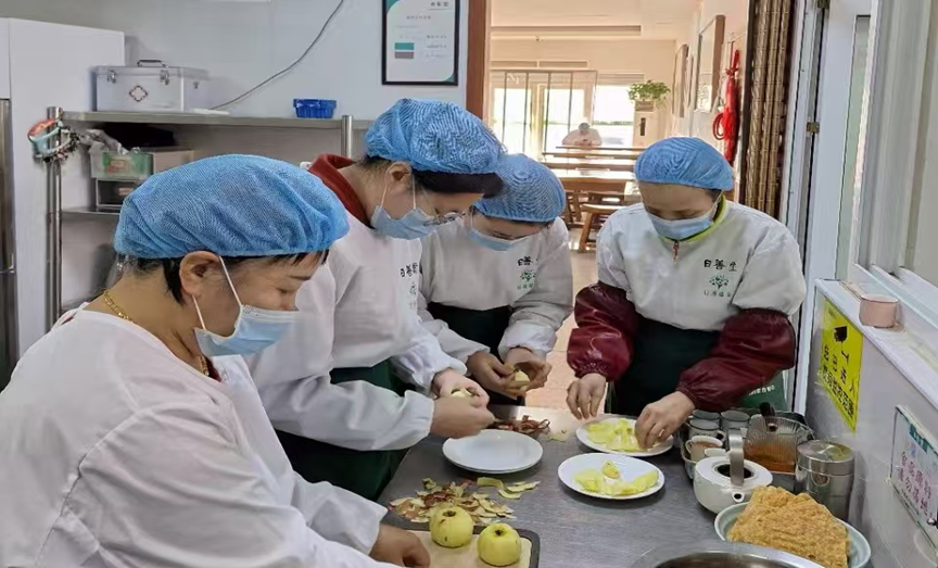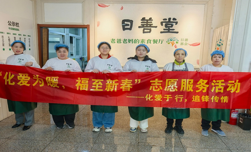 活动当天,志愿者们一早便抵达日善堂,他们分工明确、配合默契,对日善堂内外环境进行全面清扫,为老人们打造一个干净整洁的就餐环境。随后,在值班团队的带领下,志愿者们为老人们精心准备午餐,用实际行动传递温暖与关爱,让老人们在寒冬里感受到家的幸福与温馨。