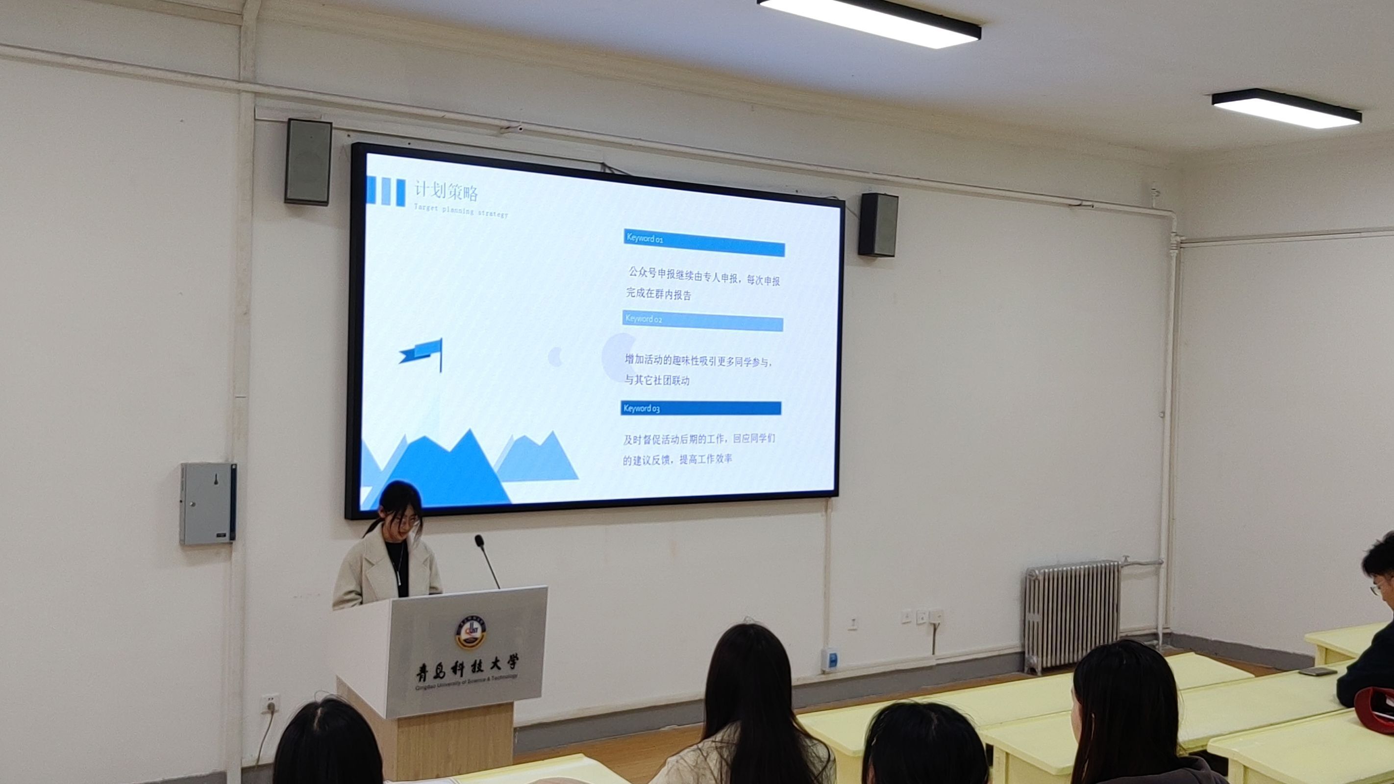 秀米部新任站长潘永琪对未来秀米推文工作计划做出了规划,她提出要积极发布有意义且有趣的推文,注重推文质量和优化推文内容是提升工作站影响力和服务质量的关键策略,并提出积极推动各个站长之间的联系,做到决策透明,想法互通,齐心协力。