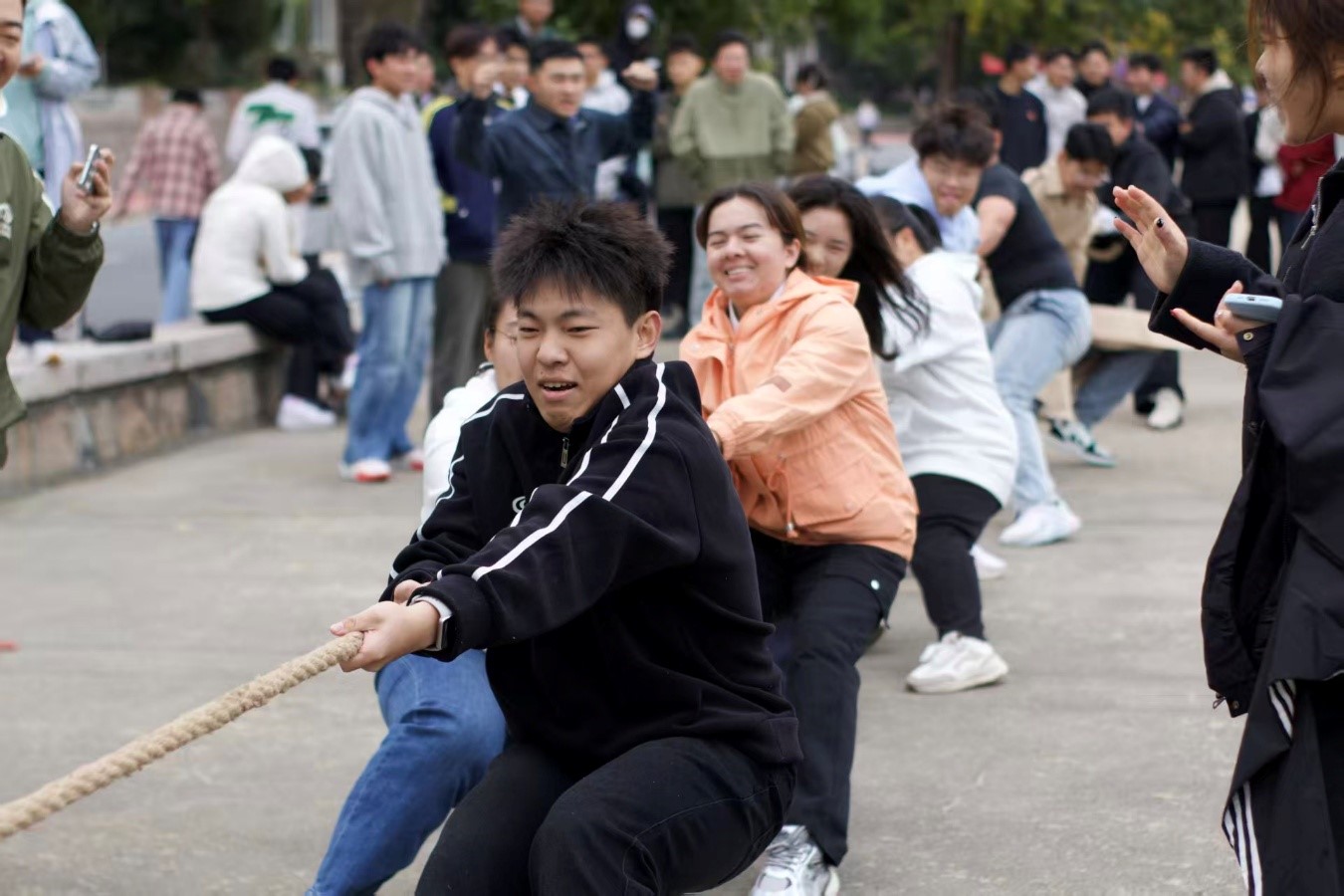 比赛现场氛围热烈如火,各队选手摩拳擦掌、斗志昂扬。随着裁判一声清脆哨响,比赛正式开始。双方队员瞬间发力,身体奋力后倾,拼尽全力向己方拉扯绳索,每一局都堪称惊心动魄的较量,也拉近了同学们之间的距离。