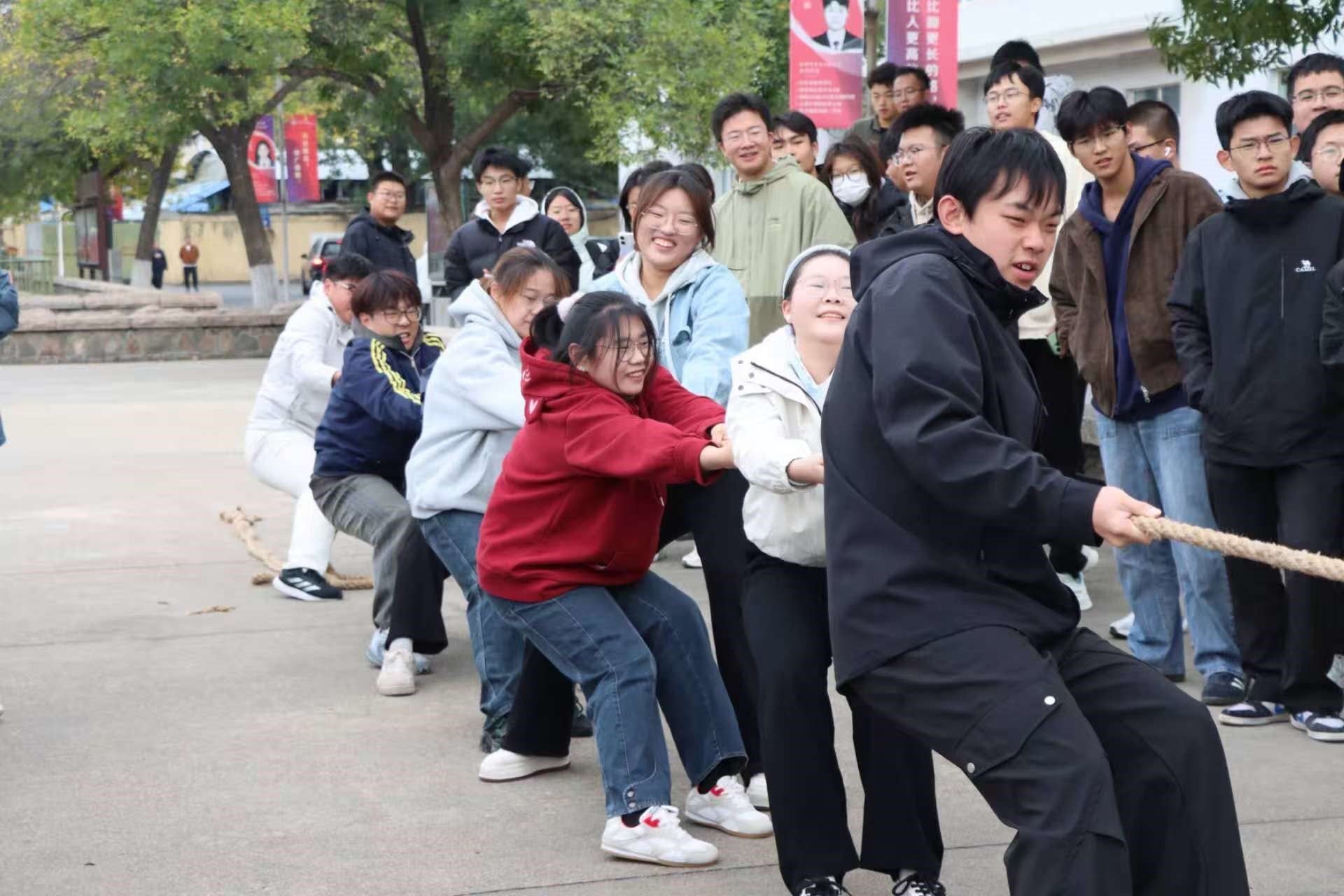 团结一心力如钢,青春风采绽光芒。本次拔河活动不仅激发了青年学子的集体荣誉感和团队精神,更像一座坚固的桥梁,凝聚了人心、团结了集体。化学院青年学子将以此次拔河比赛为新的起点,在未来的学习和生活中,继续弘扬团结拼搏、奋发向上的精神,谱写更加绚丽的篇章。