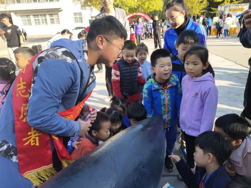 开幕式上,AF街舞社团为现场观众带来了一段精彩的舞蹈,学生会带来科普诗朗诵。开幕式结束后,参观讲解正式开始。活动现场,虎斑宝贝和灰鲸鲨等众多奇特的海洋生物标本、科普仪器吸引了一批批过路学生的注意,他们驻足于平时罕见的标本前,仔细聆听来自水族馆专业讲解员和海之韵科普志愿者们的生动讲解。讲解活动持续了两个多小时,志愿者们不断迎接对海洋知识感兴趣的人,有路过的老师、学生,有专程来团建活动的橡胶185班的同学们,还特别邀请了青岛科技大学幼儿园的小朋友们。