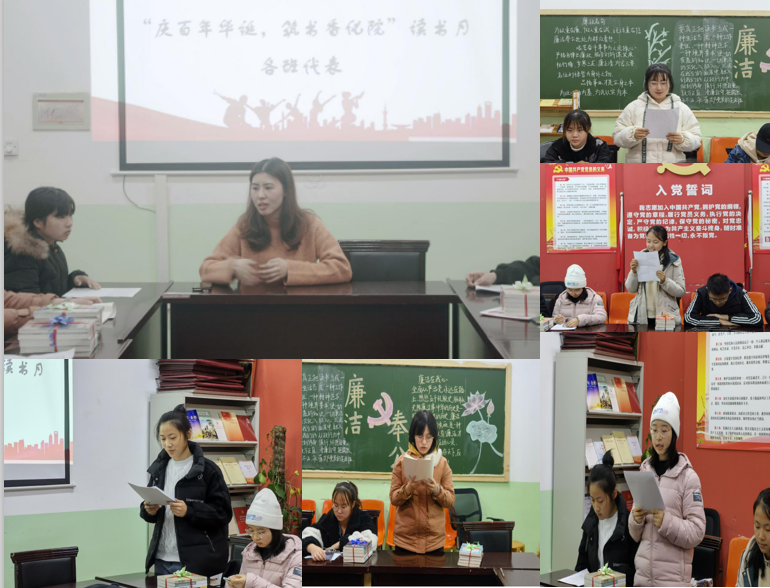 为庆祝建党百年华诞,扎实开展党史学习教育,进一步推进书香校园活动,营造爱读书、读好书、善读书的书香氛围,吃瓜网官网开展主题为“庆百年华诞,筑书香化院”的书香校园读书月系列活动,并于11月23日于一政223召开读书分享交流会。化学院学工办主任兼团委书记刘施施、学工办副主任兼团委副书记苗清以及部分学生代表参加了活动。