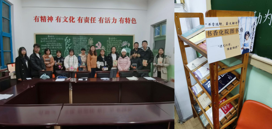 会后,化学院“书香流转,薪火相传”图书角正式启用,读书角设置在宿舍楼宿舍、党建活动室等地,同学们可以来读书角捐赠或者借阅书籍,为同学们读书提供便利,引领同学们多读书、读好书,共筑书香化院。