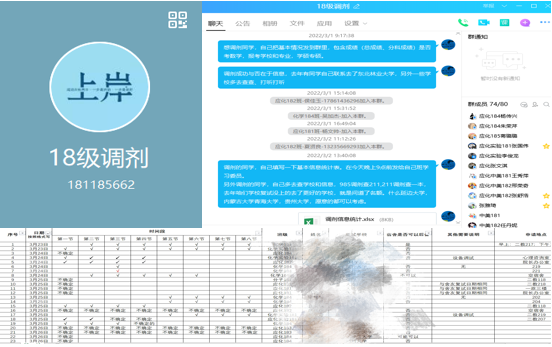 三是专门成立考研调剂群,统计调剂同学的具体考试情况,及时定向发布调剂信息,邀请学院领导、老师专门召开调剂会,给调剂的同学讲一些调剂政策、渠道和注意事项。四是专门成立由保研同学成立的复试后勤保障小队,做好信息搜统计、联系沟通、复试场地管理服务各方面保障。全心全意,精准施策,提供保障,服务考试复试,助力上岸。