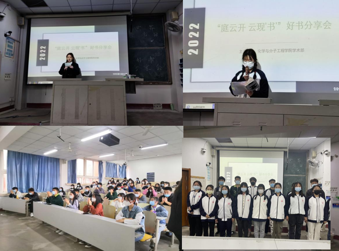 阅读新时代,奋进新征程。4月23日,正值第27个世界读书日,为推动校园文化建设,提高大学生综合素质,使同学们形成多读书、读好书的良好风尚,加强学风建设,化学院开展系列读书活动,组织和引导全院学生在读书中学会思考,于二教115室开展以“庭云开,云现书”为主题的好书分享会活动。