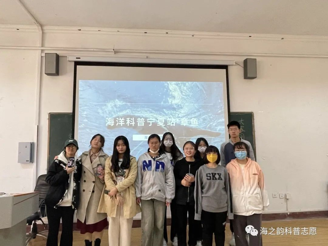 海之韵科普志愿服务团成立于2006年,立足高校,辐射社会。在与青岛市水族馆及其他社会公益组织的长期合作下,社团一直不断完善志愿服务体系,项目以普及海洋文化为主要内容,以在校学生和普通民众为服务对象,致力于引导大众树立正确海洋观、提升公众海洋意识与科学素养。海之韵志愿服务团依托青岛科技大学,下设6个部门,现有成员110人,指导老师2人(青岛科技大学、青岛水族馆)。与青岛水族馆合作13年来,“海之韵”多批社团成员先后担任该馆志愿讲解员,并长期利用寒暑假、重大节庆日、周末等积极参加海洋知识进社区、进商场、进学校等科普宣传工作,海洋科普进校园活动已连续举办八届。已经成为青岛水族馆科普高质量发展的重要延伸和有力支撑。服务团曾获青岛科技大学“十大光荣集体”、“优秀社团”等称号,累计100余人获得“青岛水族馆志愿服务先进个人”等荣誉。