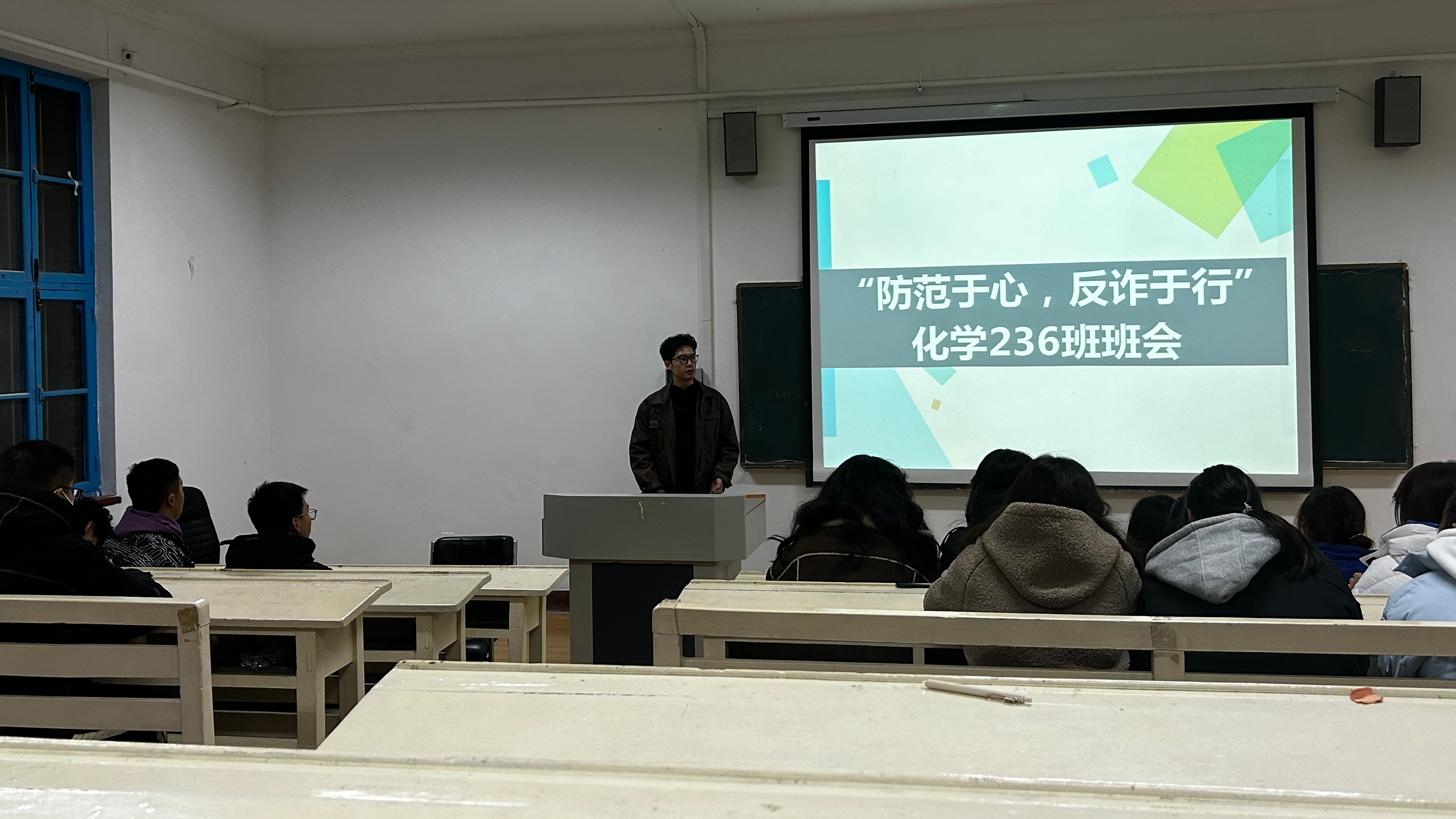 化学院对新生进行实验室安全准入培训,引导学生学习实验室安全守则、提升实验安全意识,保证课堂安全。开展宿舍违规电器检查、重视宿舍基础设施消防安全,促进学生安全牢记心中。学习《青岛科技大学校园内非机动车管理暂行办法》,了解学校校规,提升学生规矩意识和纪律观念,时常平常经常保证学生安全稳定。