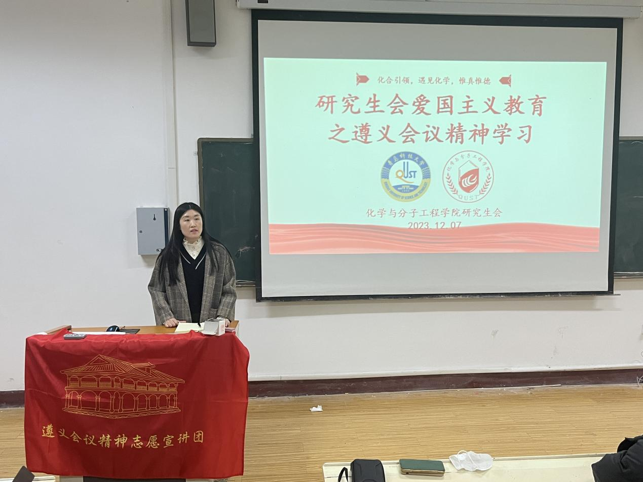 为深入学习宣传贯彻党的二十大精神,深入贯彻落实习近平总书记提出的“传承红色基因、讲好遵义故事”的重要要求,赓续红色血脉,努力成长为担当民族复兴大任的时代新人。12月7日,化学院研究生开展化学院研究生举行爱国主义教育之遵义会议精神学习活动暨学生骨干培训会,参加宣讲活动的各队伍代表进行演讲,本次活动由辅导员程丽老师主持,化学院研会成员参与此次活动。