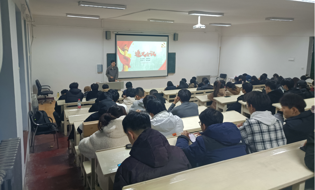 2023年12月6日,宣讲团加入学院青马工程全体成员培训课程,宣讲了有关遵义会议以及遵义会议精神内容。宣讲团成员张高鹏提到:长征途中召开的遵义会议,是我们党历史上一个生死攸关的转折点,遵义会议精神在把马克思主义基本原理同中国具体实际相结合、坚持走独立自主道路、坚定正确的政治路线和政策策略、建设坚强成熟的中央领导集体等方面,留下宝贵经验和重要启示。这对青马工程全体成员以及全体团学骨干产生深刻影响,并激励骨干们心怀人民群众,坚持走中国特色社会主义道路,牢记使命和责任。