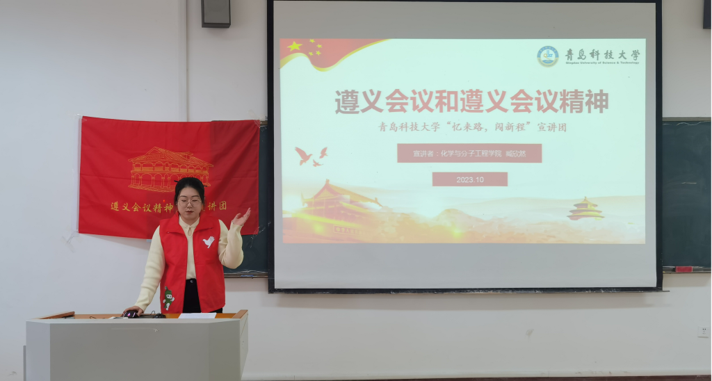 青岛科技大学“忆来路,闯新程”遵义会议宣讲团旨在面向校内外先进群体,传播遵义会议内容及文化,弘扬遵义会议精神,激励青年学生及社会群众牢记革命历史,心怀远大理想,不忘初心奋力前行。迄今已面向青岛科技大学吃瓜网官网研究生第一党支部全体成员、化学院青马工程成员以及全体团学骨干、化学院研究生会全体成员等召开多次宣讲活动。