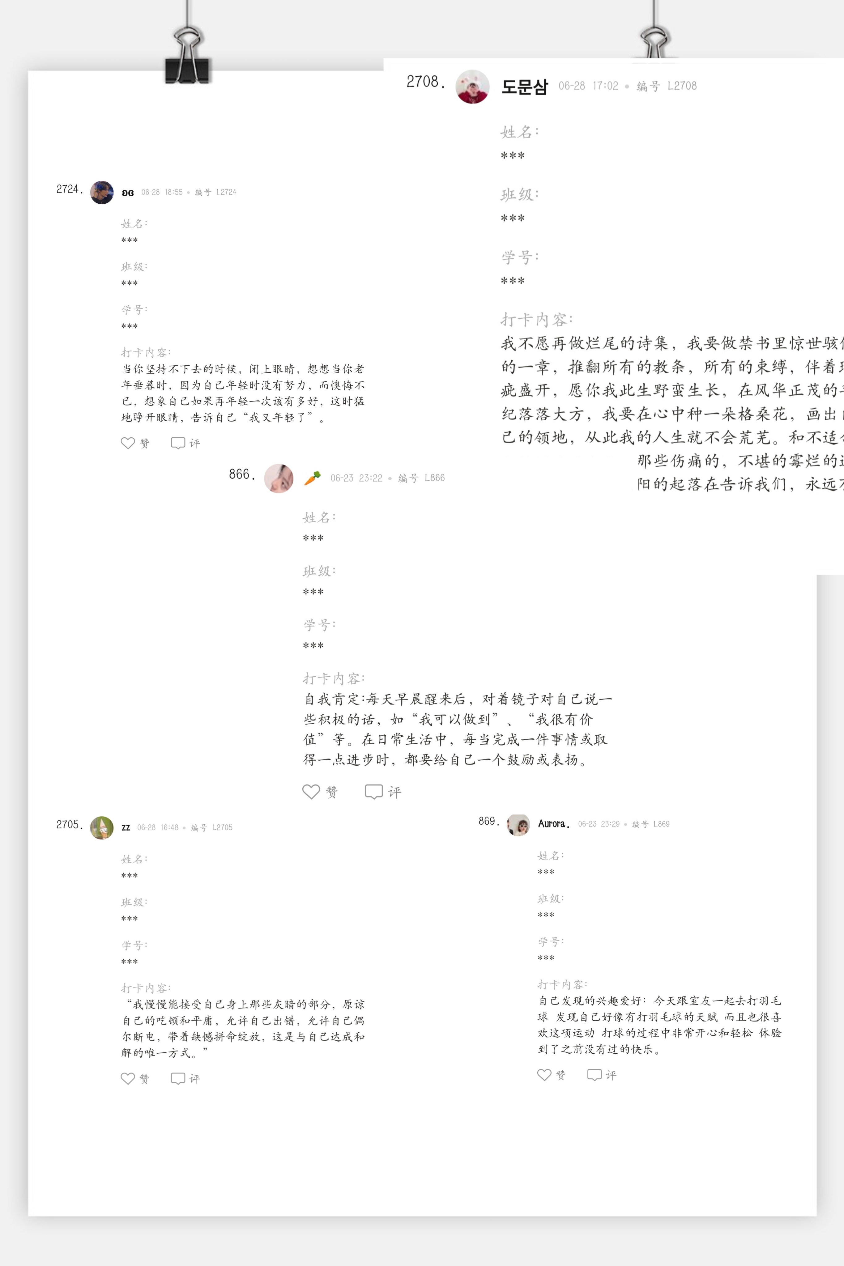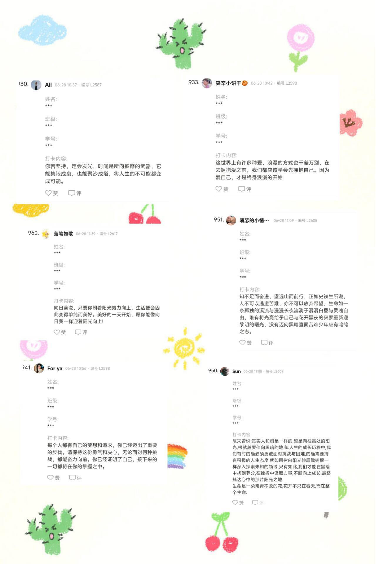 本次线上活动不受时间和地点限制,并可根据自身时间安排灵活打卡,更加便捷。此外,线上活动也提供了良好的隐私保护,让那些希望保持匿名或担心被评判的同学也能积极参与。通过“悦己”行为和积极分享,帮助同学们缓解期末复习的压力,保持良好的心态。帮助同学们更好地了解自己,接纳自己的优点和不足,提升自我认知水平。同时通过读书欣赏和快乐分享,帮助同学们学习情绪管理技巧,保持积极乐观的心态。