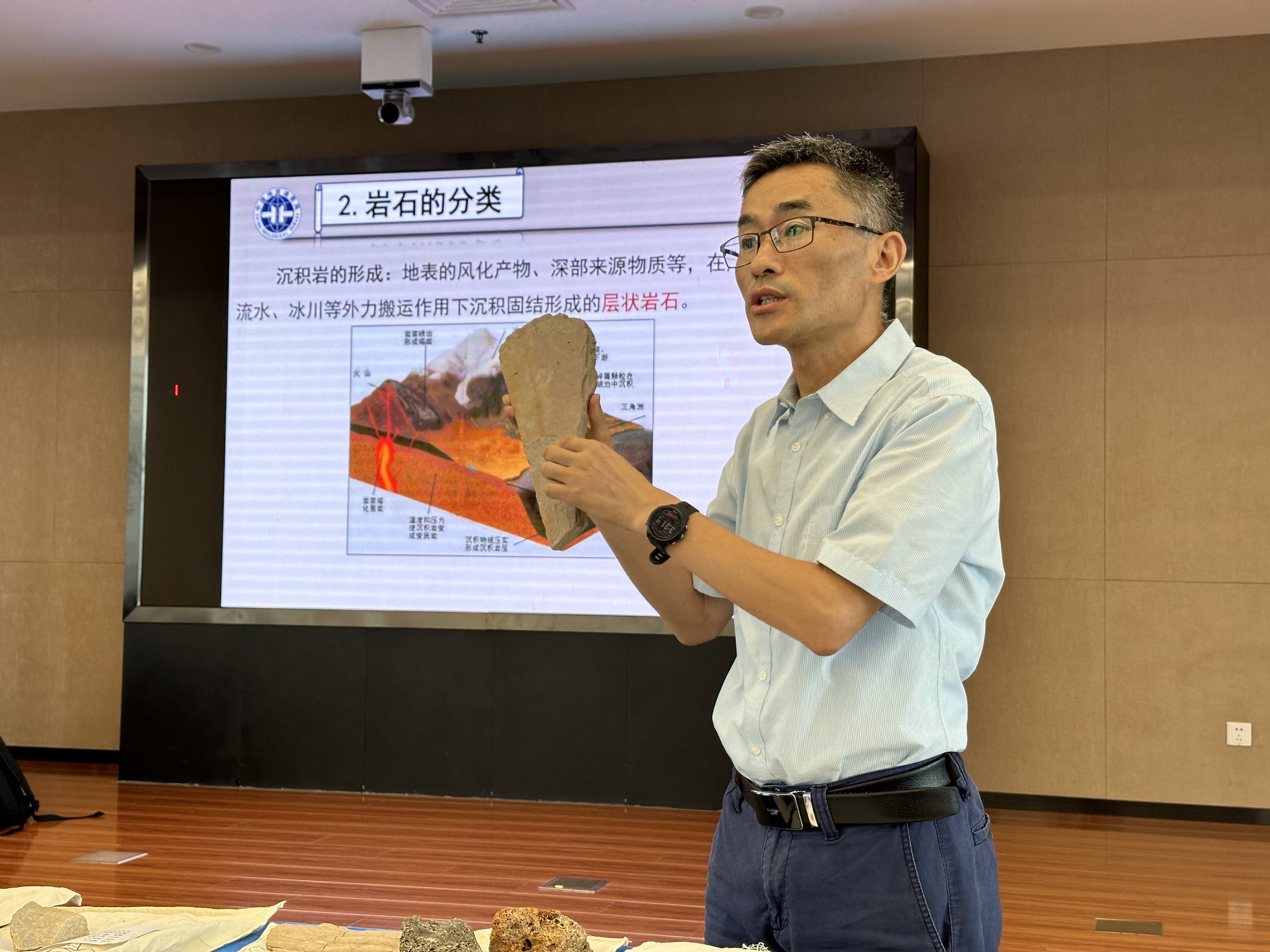 团队凭借青岛市即墨区蓝色科研资源,于23日赴中国地质调查局青岛海洋地质研究所,开展了一场“深耕蓝色国土,加快科技创新步伐”的海洋地质研学活动。授课过程中,青岛海地所专家向实践团成员重点讲解了青岛市海洋地质特点,深入讲授了海底地形、地质构造、矿产资源分布及类型等情况,介绍了中国海洋地质学家在海洋矿产资源的勘探和研究方面取得的重要进展,并向师生展示了部分岩石样品,引起了实践团学生高度关注,激发了学生的浓厚兴趣。