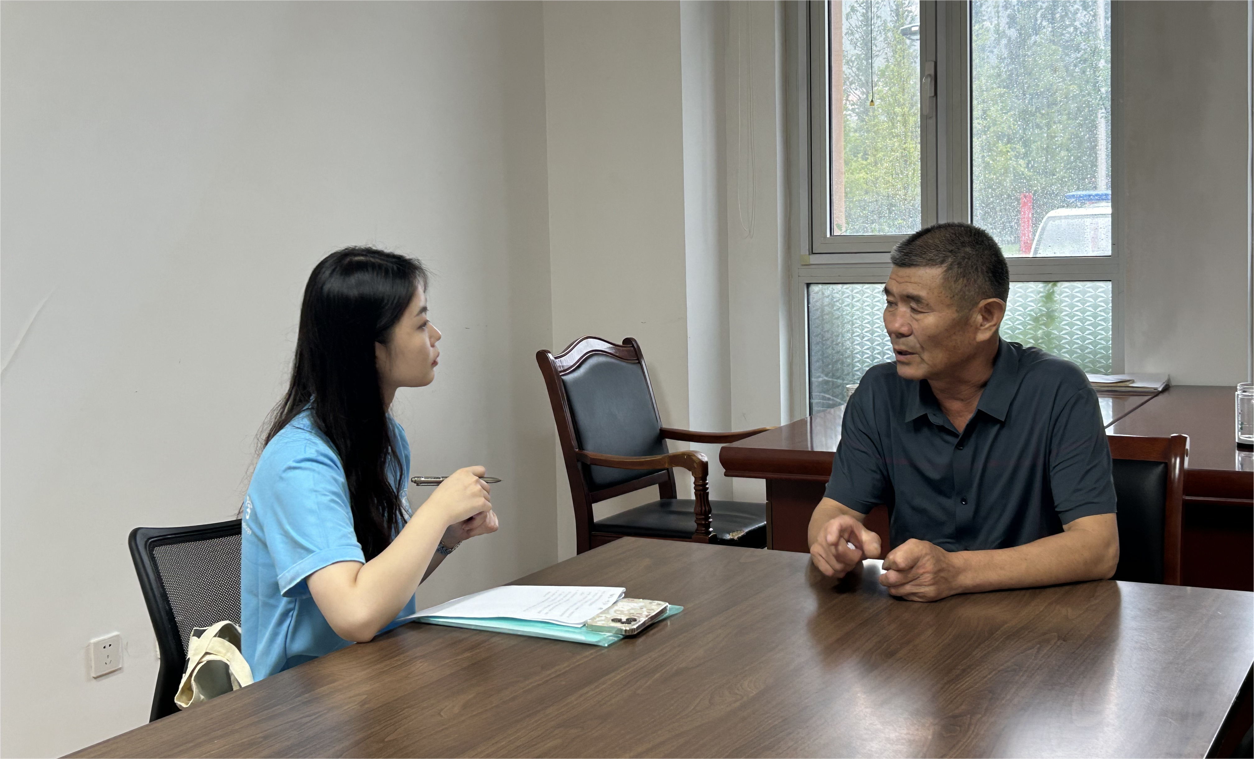 实践团成员采访到了即墨区鳌山卫街道鳌角石村党委副书记李云好。李书记为团队成员介绍了鳌角石村的基本情况与乡村振兴的发展历程。在任期间,他结合村庄实际,积极带头探索乡村治理新路,在兴办企业的同时,守护好鳌角石的一绿水青山。他表示,让鳌角石人民过上幸福的生活不只是一句口号。