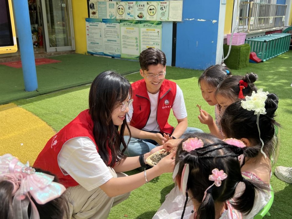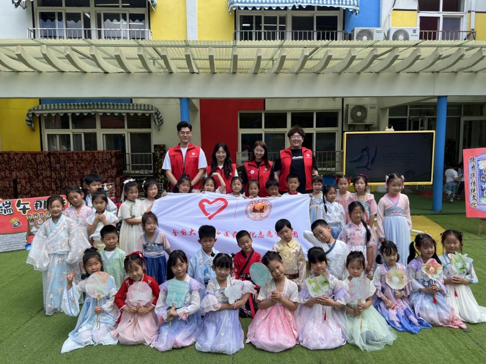 此外宣讲团还曾与郑州路幼儿园携手,以端午节和中医药相结合的形式,展开“化育山海大课堂——童心计划”线下实践教学。和小朋友们一起包粽子、编织五彩绳、做漆扇、画粽图等。在一片欢声笑语中,和孩子们一起体验了中华民族的传统文化。