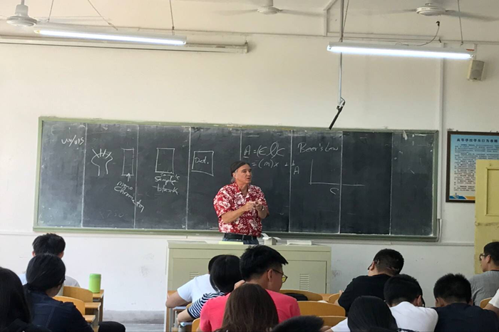 青岛科技大学化学院应用化学专业中美合作办学项目自2011年实施以来,引进美国特洛伊先进的教学管理理念和优质教育资源,采取4年制本科教育模式,教学计划由双方共同制定,师资由双方共同选派教师任教。本学期美国特洛伊大学教师Dr.Beaver再次来到吃瓜网官网,为应用化学(中美)专业学生讲授“基础化学原理”(Principles of Fundamental Chemistry)和“高等有机化学”(Advanced Organic Chemistry)课程。