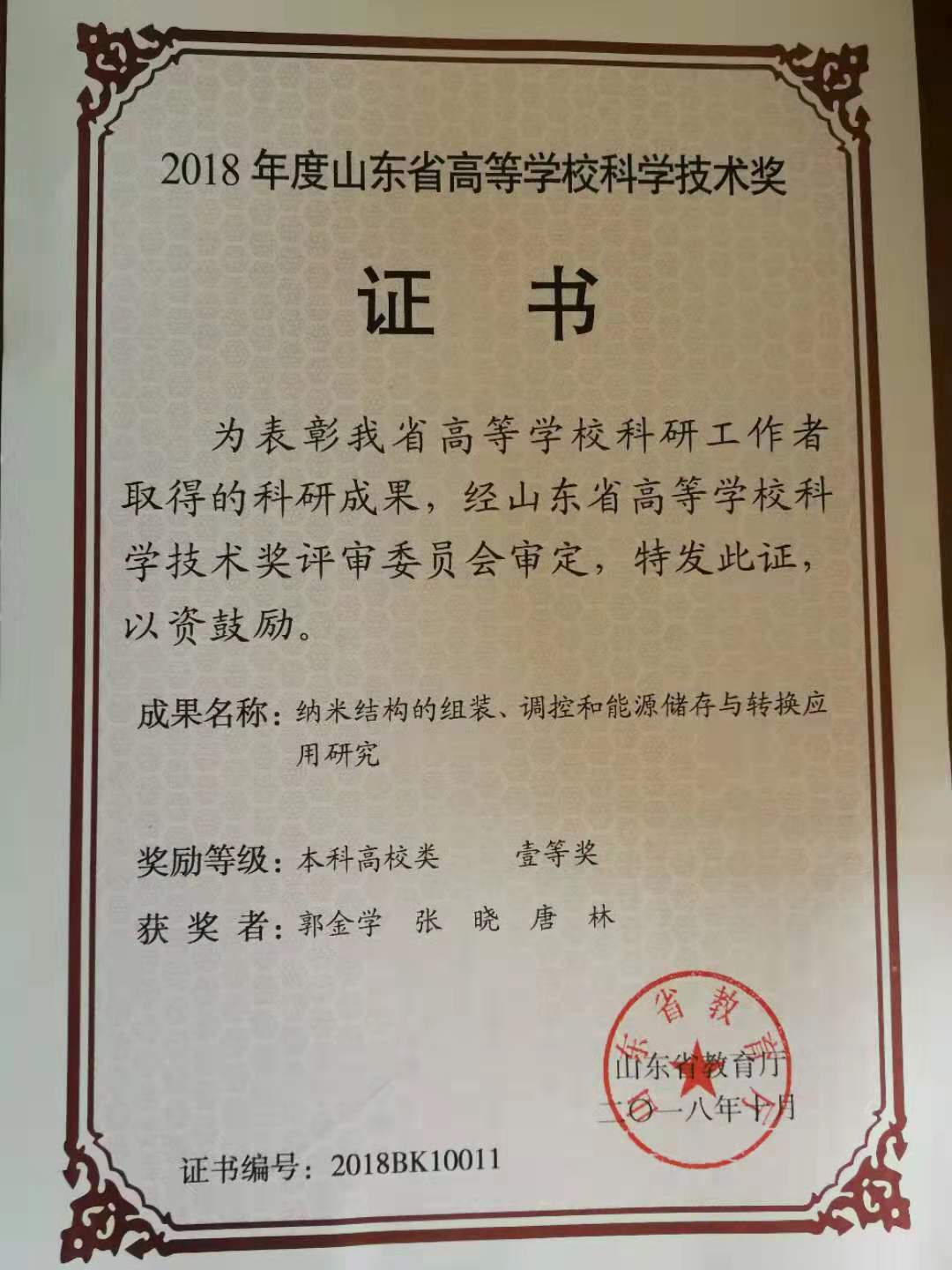 2018山东省高等学校科学技术奖